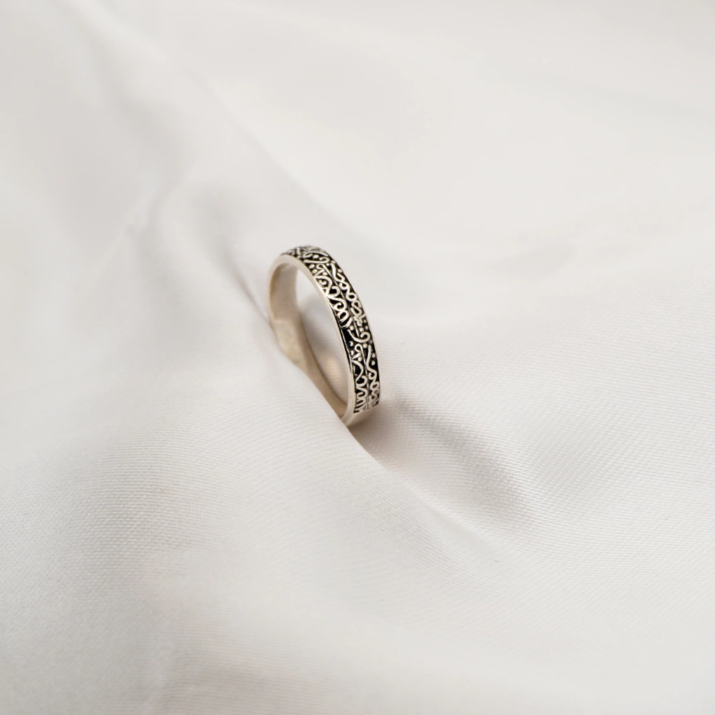 Exiba elegância e autenticidade com este anel com delicados dentalhes em arabescos. Seu design clássico e sofisticado destaca o brilho em contraste com os detalhes escurecidos, criando uma peça única e cheia de personalidade.