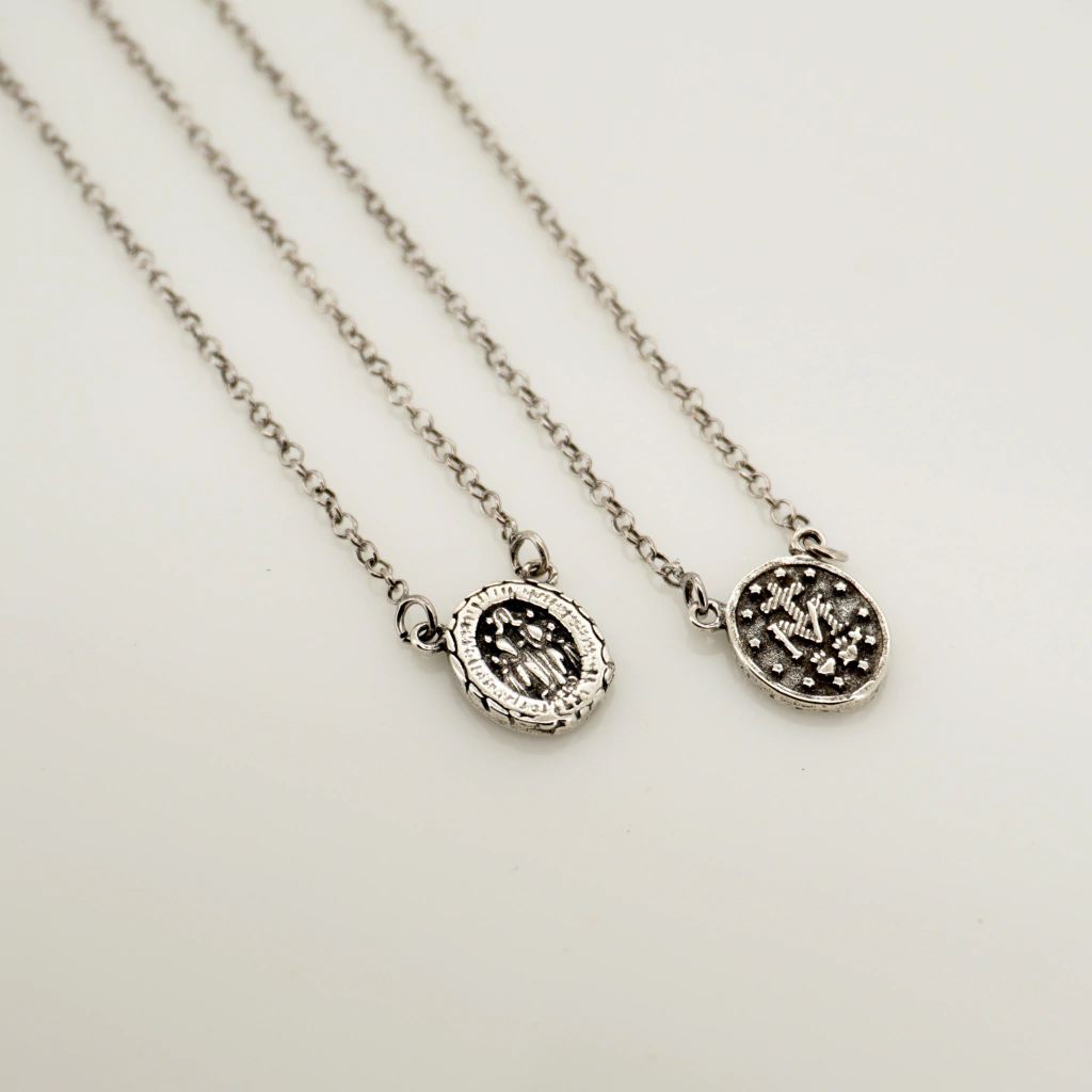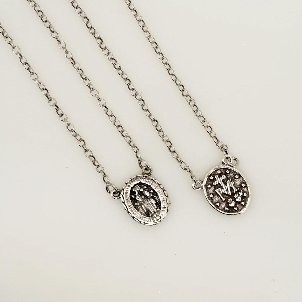 Experimente a combinação perfeita de elegância e proteção espiritual com nosso escapulário de Nossa Senhora das Graças. Este encantador acessório possui uma medalha dupla: de um lado, a linda imagem de Nossa Senhora das Graças e, do outro, a icônica medalha milagrosa.