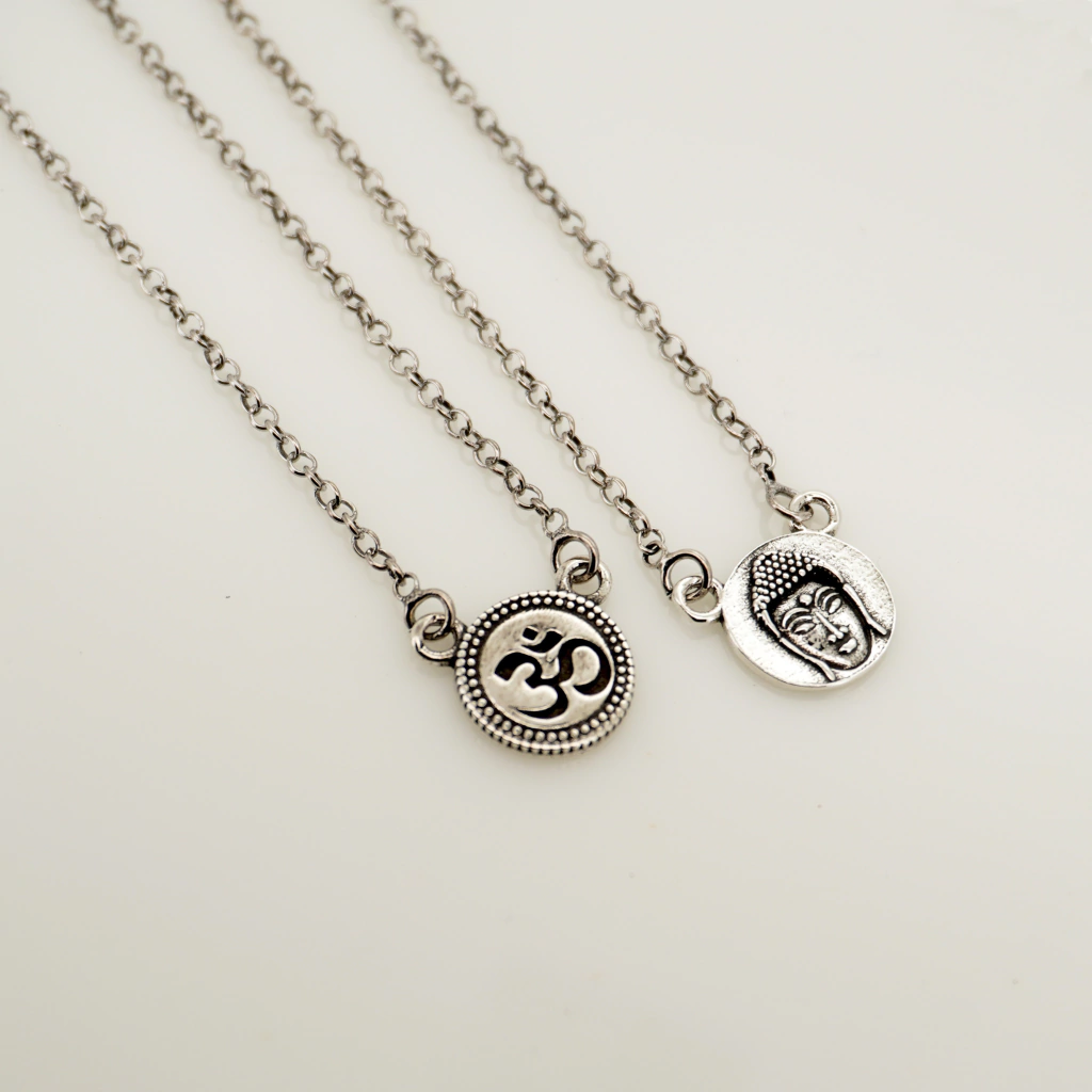 Conecte-se com sua espiritualidade através deste escapulário. Com medalhas delicadas que trazem o símbolo Om e a imagem de Buda, ele representa paz, equilíbrio e energia positiva.