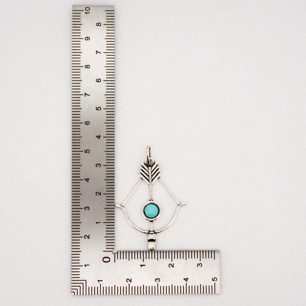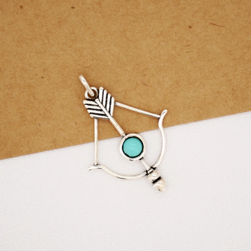 Pingente em forma de arco e flecha, representando foco, determinação e direção.