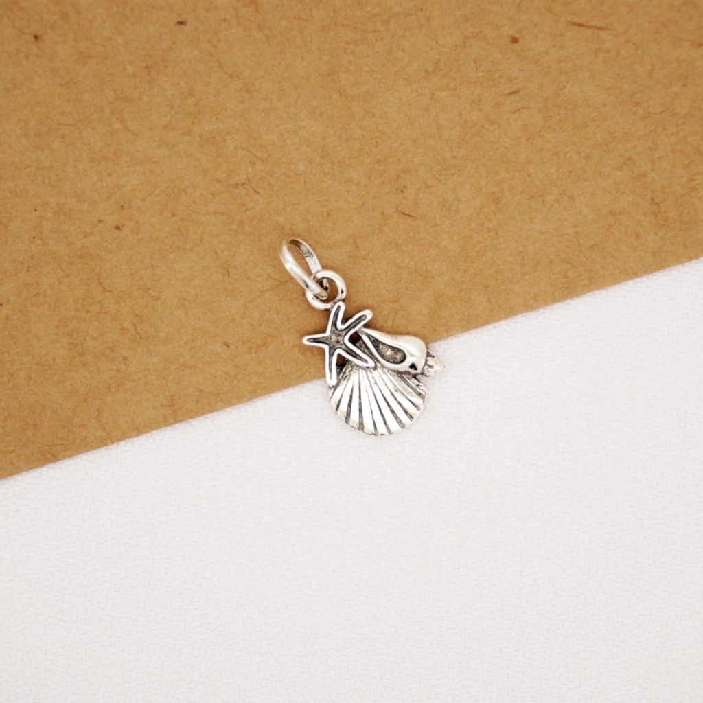 Delicado pingente com concha, estrela-do-mar e cavalo-marinho, perfeito para trazer a beleza e o charme do mar para os seus acessórios.