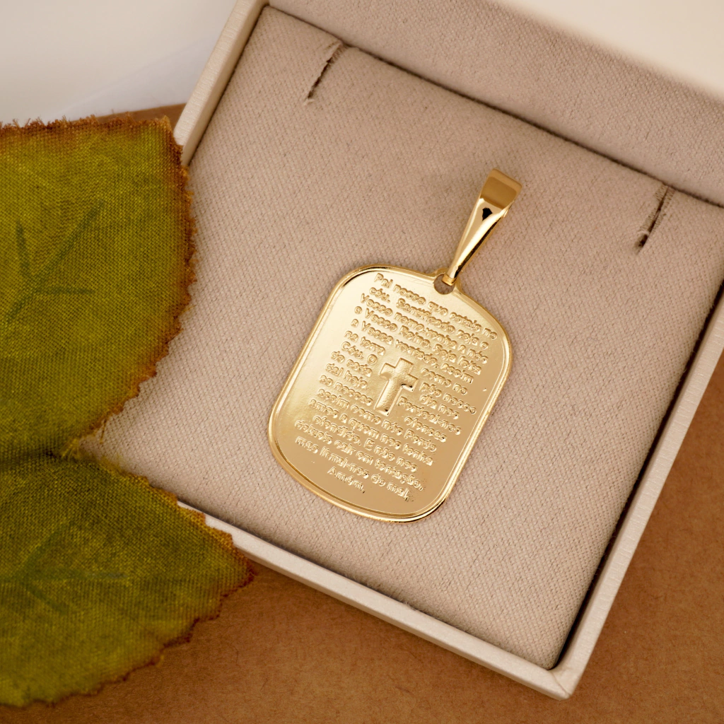 Carregue a fé e proteção sempre com você com este lindo pingente. Com detalhes cuidadosamente gravados, ele é mais que um acessório: é uma lembrança de espiritualidade e força para o dia a dia. Esse pingente traz consigo uma mensagem de paz e esperança, perfeita para quem busca um toque de significado em cada momento.
